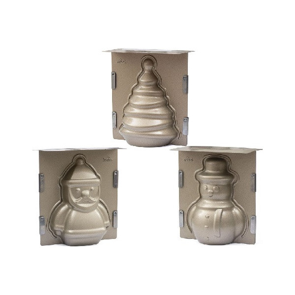 Set 3 stampi natalizi 3D antiaderenti da Decora: stampi forno 3D, antiaderenti, di alta qualità per uso intensivo, per torte a forma di pupazzo di neve, albero di natale e babbo natale tridimensionali.