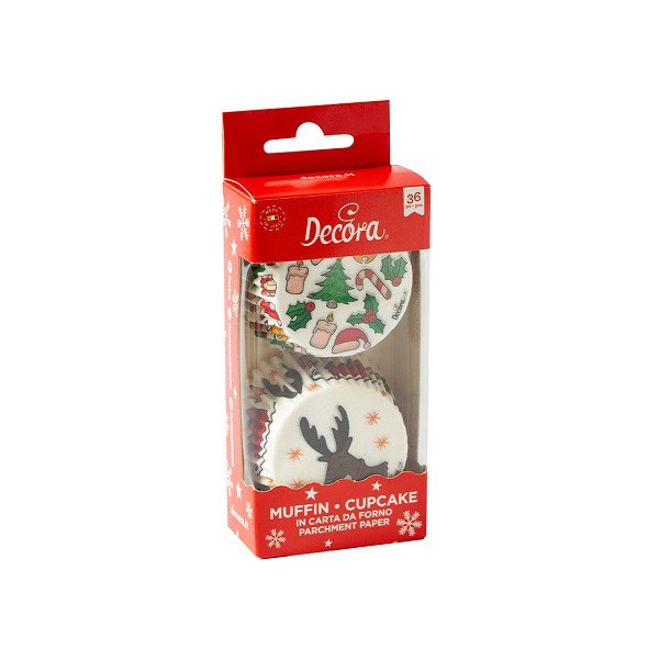36 Pirottini muffin renna natalizia: carta forno antiaderente con renna e figure a tema natalizio, diametro 5 cm h 3,2 cm da Decora. Ideali per cuocere, presentare e regalare dolcetti.