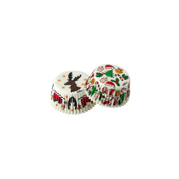Pirottini in carta forno antiaderente con decori rene ed altre figure natalizie, diametro 5 cm h 3,2 cm da Decora.