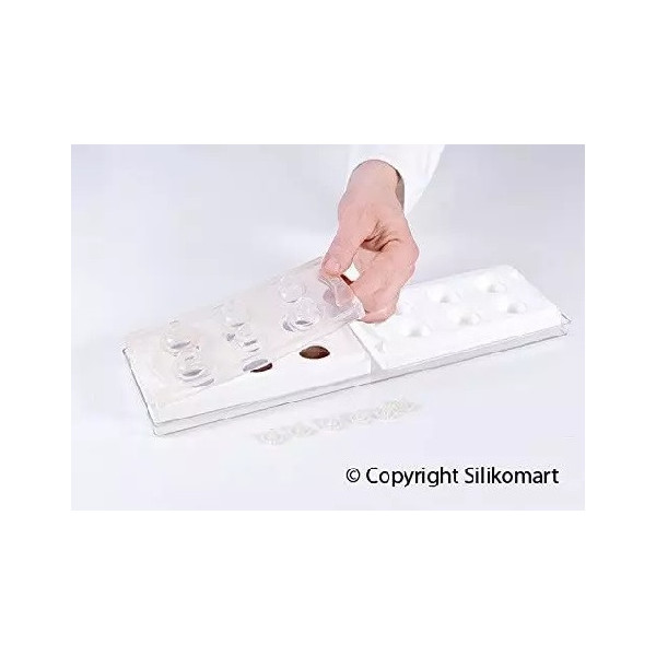 Stampo sfera in silicone flessibile e antiaderente realizzato in 100 % silicone liquido da Silikomart, l'elevata anti aderenza permetterà di smodellare il prodotto con elevata facilità. Grazie alle temperature di servizio del silicone lo stampo può essere messo direttamente dal forno al frigorifero e viceversa e creare dei Cake Pops da forno o Ice Pops da frigo innovativi.