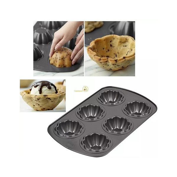 Teglia antiaderente per 6 cialde biscotto per gelato diametro 9 cm circa.