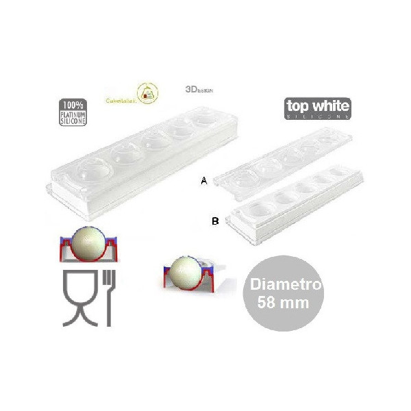 - MULD58 Silikomart, 5 sfere grandi ø5,8 cm,