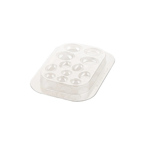 Cupola Scrigno Silikomart: set composto da Kit Choco Globe, con base in silicone e semisfera in tritan e, tre stampi silicone truffle 40 ml, truffle 70 e truffle 120 ml per torta cupola a scrigno e 3 palline