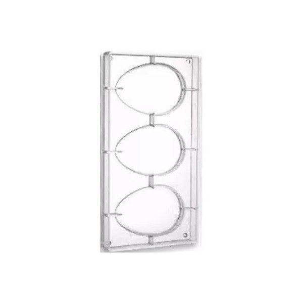 Da 130 a 250 g con 3 cavità stampo uovo in policarbonato professionale per cioccolato Stampo uovo da 120 g, in policarbonato con 3 impronte di 94xh145 mm Da 130 a 250 g con 3 cavità stampo uovo in policarbonato professionale per cioccolato Da 130 a 250 g con 3 cavità stampo uovo in policarbonato professionale per cioccolato