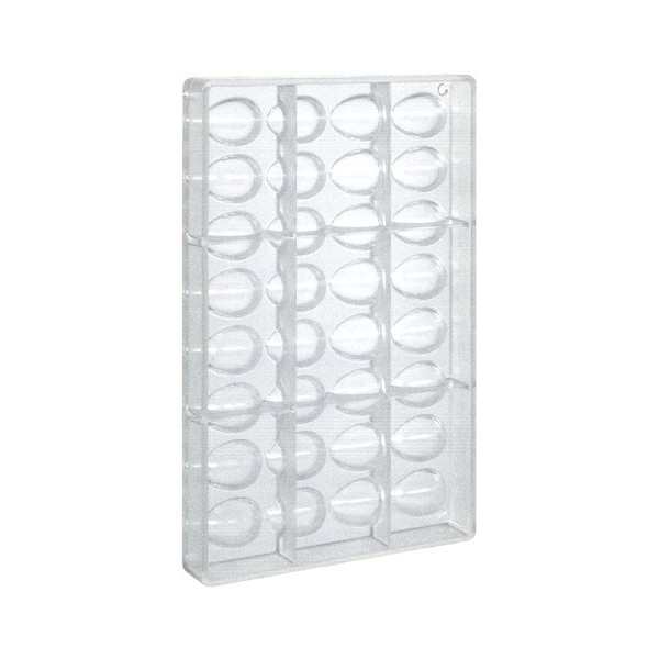 Questo stampo in policarbonato professionale vi permetterà di realizzare degli ovetti di cioccolato nel modo più preciso.