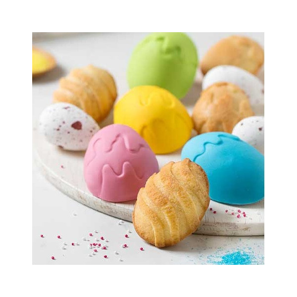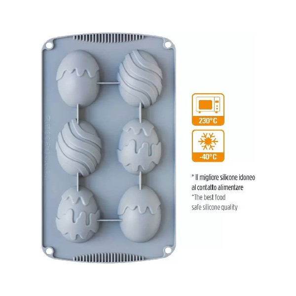Stampo in silicone Easter da Decora: stampo in silicone 6 Uova di Pasqua decorate, 5,5x7cm h2,5cm, in silicone 100% Platinum, flessibile e antiaderente