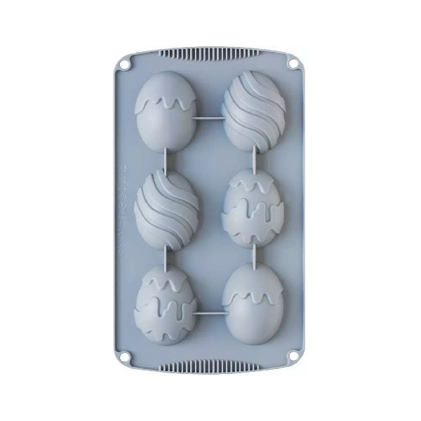Stampo in silicone Easter da Decora: stampo in silicone 6 Uova di Pasqua decorate, 5,5x7cm h2,5cm, in silicone 100% Platinum, flessibile e antiaderente.