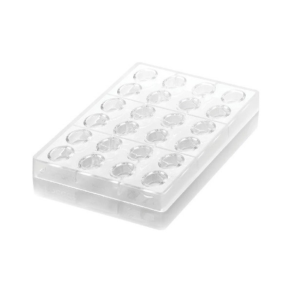 Ovale 01 P Silikomart stampo in Tritan, CH014 linea Chocado, per 24 cioccolatini a forma ovale perfette e lucide di dimensioni 33x23 h 15 mm e volume 8,5 ml.