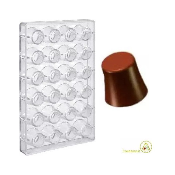 Stampo cioccolato bicchierino alto 3 o 4,5 cm: stampo per 24 bicchierini bassi da 22 g o alti da 40 g, in policarbonato per uso intensivo o professionale