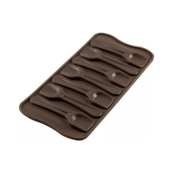 Choco Spoon Silikomart: stampo in silicone per 7 cucchiaini da caffè in cioccolato di dimensioni 96x26xh16 mm