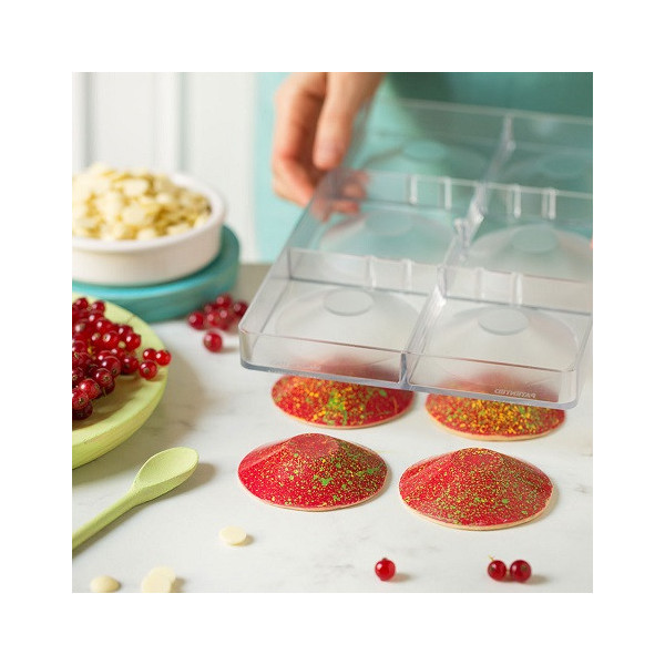 Stampo in policarbonato professionale vi permetterà di realizzare dei piatti tondi di cioccolato nel modo più preciso. Stampo pratico da usare grazie alla forma brevettata dello stampo che permette la presa dello stampo con un unica mano.