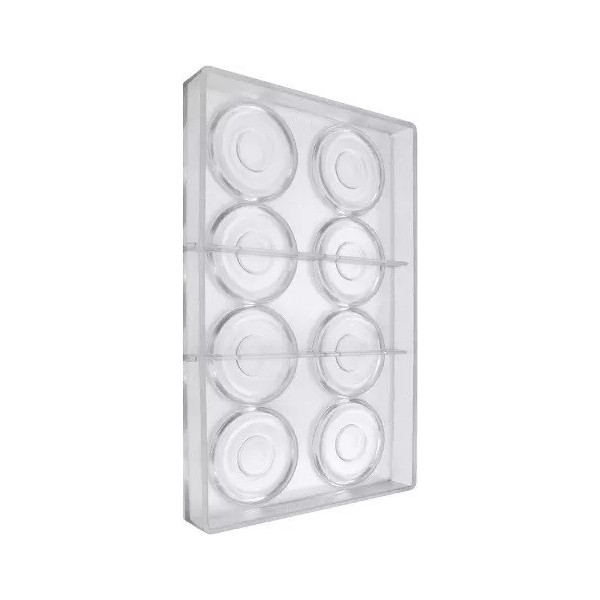 Il piatto tondo ø7,5 cm o 12,5 cm Decora: stampo in policarbonato, forma brevettata, per 6 piattini tondi di cioccolato ø7,5 cm o 2 piatti tondi di cioccolato ø12,5 cm.