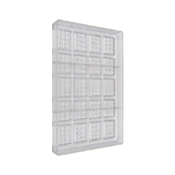 Stampo in policarbonato per mini tavoletta di cioccolato rettangolare 20 mini blocchi da 6 g di dimensioni 4x3xho,5 cm. Ideale per preparare 20 mini tavolette di cioccolato o 20 snack da 6 g
