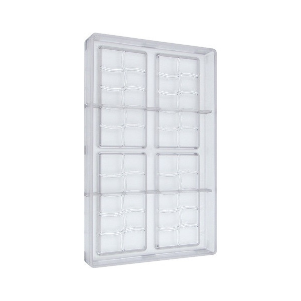 Stampo tavoletta di cioccolato da 50 g di forma rettangolare con decoro a quadretti lisci: stampo in policarbonato per tavoletta di cioccolato rettangolare 50 g, in varie misure, per uso intensivo.