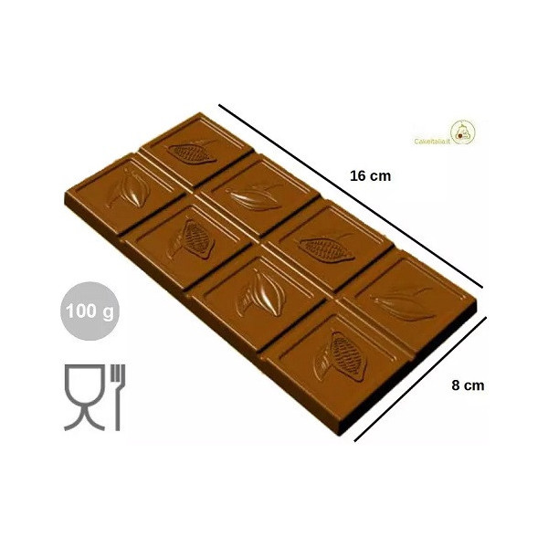 Misura tavoletta di cioccolato: lunghezza 160 mm, larghezza 80 mm ed altezza 7,5 mm
