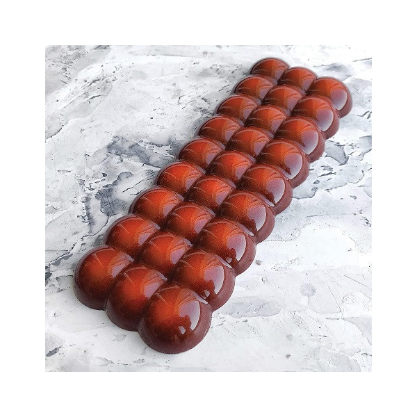 CH011 Bolla T: stampo in Tritan per 4 tavolette di cioccolato con decoro a bolle della linea Chocado da Silikomart. composta da 4 cavità lunghe 15,6 cm, larghe 6,1 cm ed alte 1,4 cm e volume 68 ml..