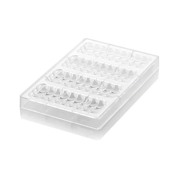 Stampo in policarbonato per mini tavoletta di cioccolato rettangolare 20 mini blocchi da 6 g di dimensioni 4x3xho,5 cm. Ideale per preparare 20 mini tavolette di cioccolato o 20 snack da 6 g