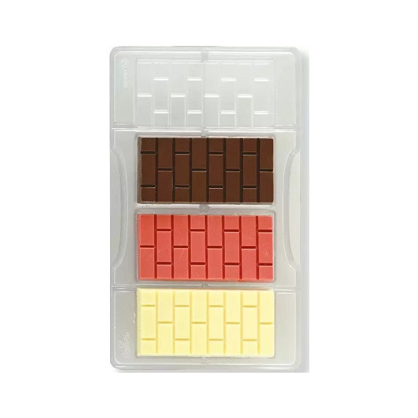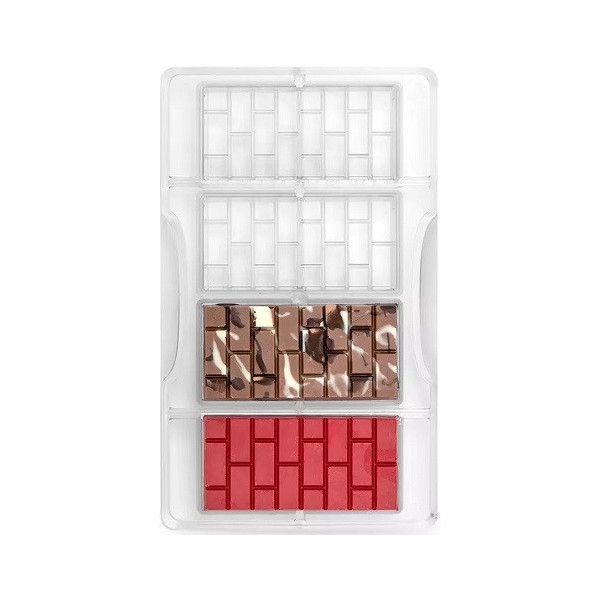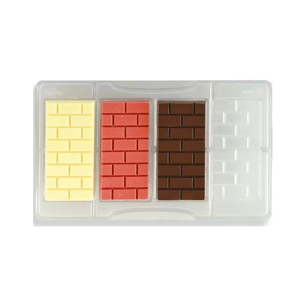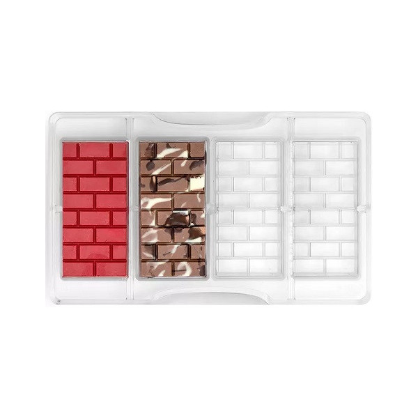 Stampo in policarbonato professionale vi permetterà di realizzare 4 tavolette a forma di mattoni nel modo più preciso. Pratico da usare grazie alla forma brevettata dello stampo che permette la presa dello stampo con un unica mano.