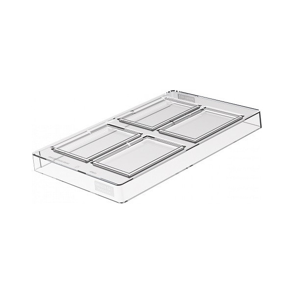 CH026 Degusta 02 T: stampo in Tritan per tavolette cioccolato della linea Chocado da Silikomart, composta da 4 cavità lunghe 9,5 cm, larghe 6,5 ed alte 5 mm e volume 30 ml.