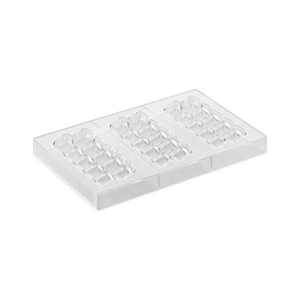 Stampo in policarbonato per mini tavoletta di cioccolato rettangolare 20 mini blocchi da 6 g di dimensioni 4x3xho,5 cm. Ideale per preparare 20 mini tavolette di cioccolato o 20 snack da 6 g