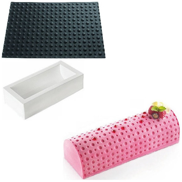 Pois Buche Silikomart kit stampo per semifreddi tronchetto a puà o a pallini o puntini: stampo tronchetto + tappeto in silicone professionale con decoro o tessitura a Puà o Pallini o Puntini