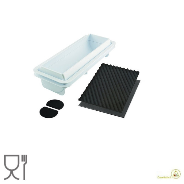 Kit Tronchetto con Inserto Buche Silikomart: stampo Tortaflex + Inserto Buche in silicone bianco Silikomart flessibile per semifreddi, torte e dolci a forma di tronchetto