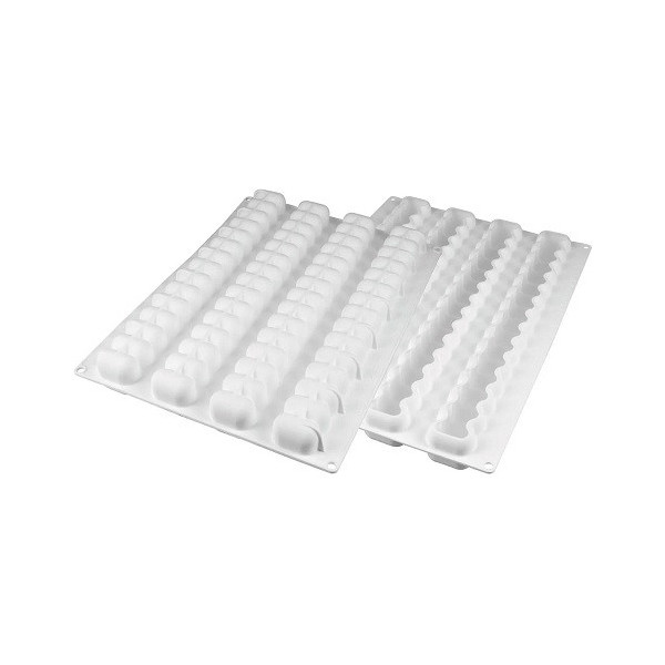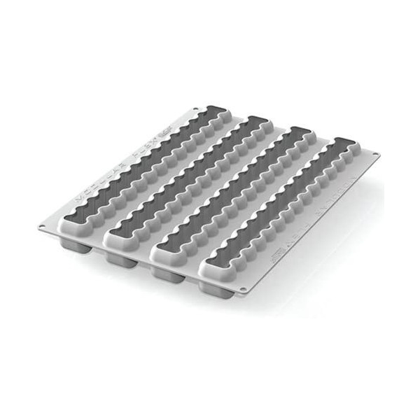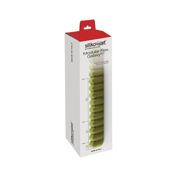 Modular Flex Galaxy, stampo professionale flessibile e modulare da Silikomart. Stampo per 4 tronchetti lunghi 37,5 cm, largo 4,2 cm ed alto 4,2 cm facili da suddividere in 15 monoporzioni quadrate.