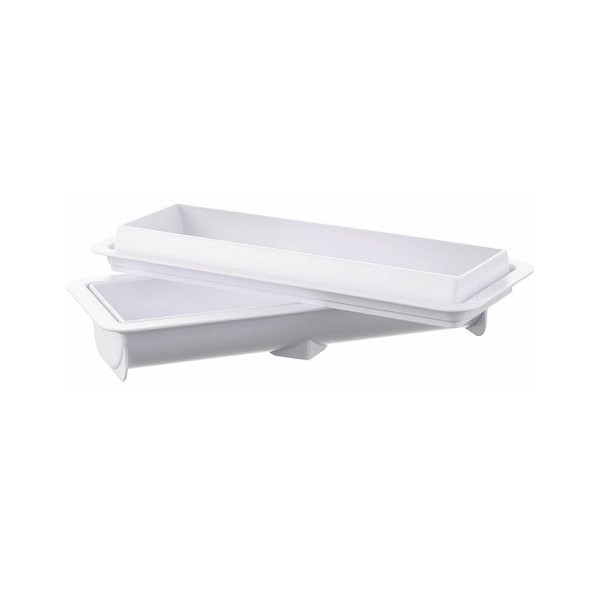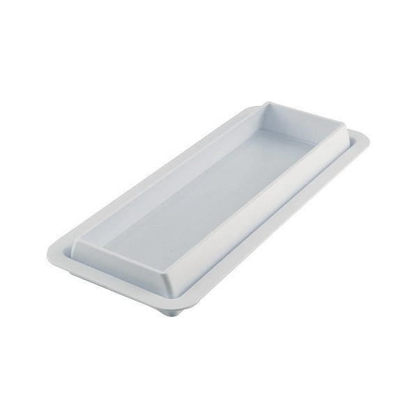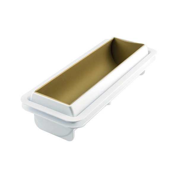 Tesoro 1300 Silikomart: stampo lingotto in silicone bianco, di dimensioni 17 x 10 h 8 cm, con supporto in plastica per maggiore stabilità e facilità di utilizzo