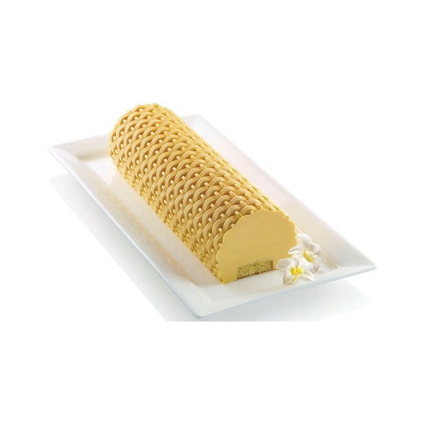 Spiral Roll 1100 Silikomart. kit stampo tronchetto per gelato e semifreddi rotolo a spirale da Silikomart è composto da: supporto per torte a forma di tronchetto + tappeto in silicone decoro rotolo a spirale + tappeto in silicone effetto liscio