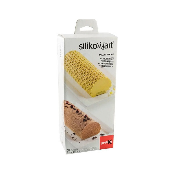 Il kit stampo tronchetto magico o Magic Bûche è composto da supporto in plastica + tappeti in silicone di Silikomart: