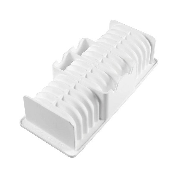 Bandoneón 1800 Silikomart: stampo in silicone bianco per tronchetto a forma di fisarmonica, 25,6x9,5 cm h 87 mm e volume 1800 ml con un originale decoro.