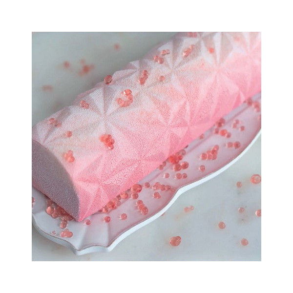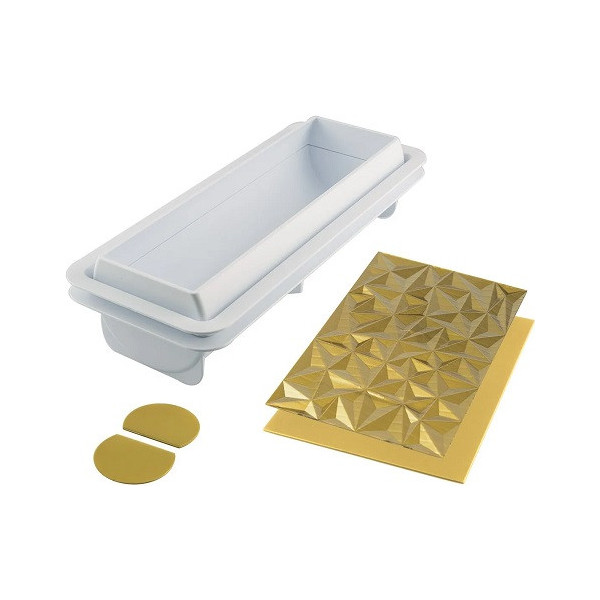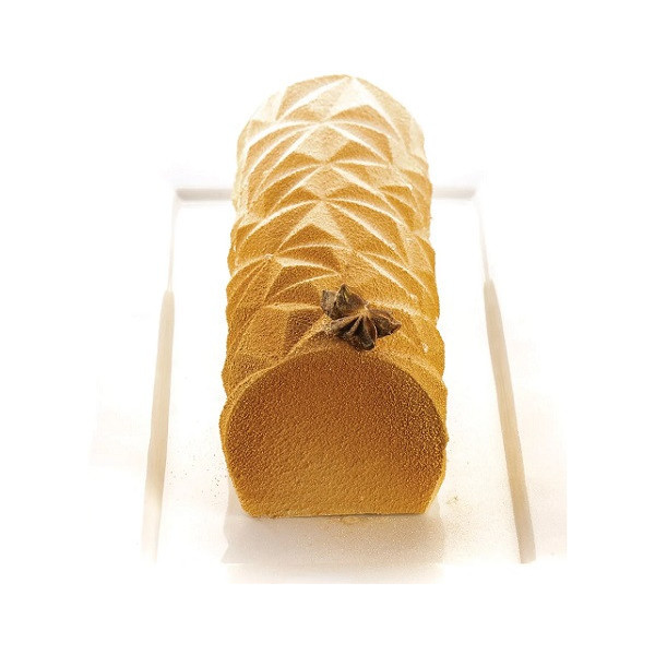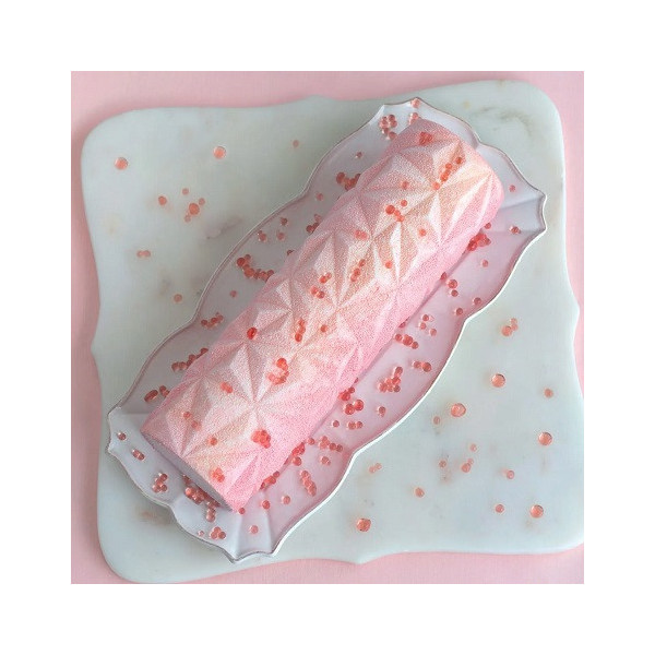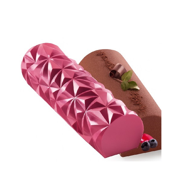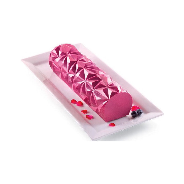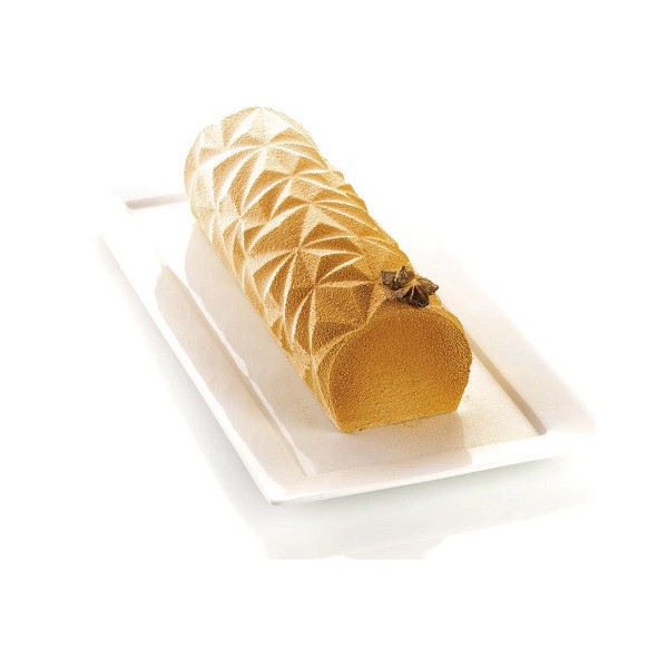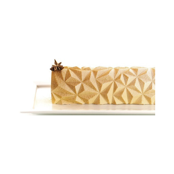 Diamond Bûche Silikomart. kit stampo tronchetto per gelato e semifreddi diamante da Silikomart è composto da: supporto per torte a forma di tronchetto + tappeto in silicone decoro diamante + tappeto in silicone effetto liscio