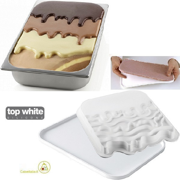 Stampo inserti vaschette gelato variegato Tapis Gel Silikomart: stampo in silicone bianco top white, per inserti vaschette ideale per gelati variegati, da Silikomart.