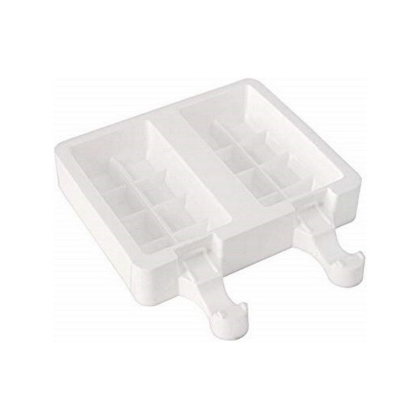 Gel 14 3D da Silikomart: set 2 stampi gelati 3D h 9,3 cm in silicone Top White + 1 vassoio in ABS da 40 cm x 30 cm + 50 bastoncini legno di faggio. Usalo anche per preparazioni cotte dolci o salate