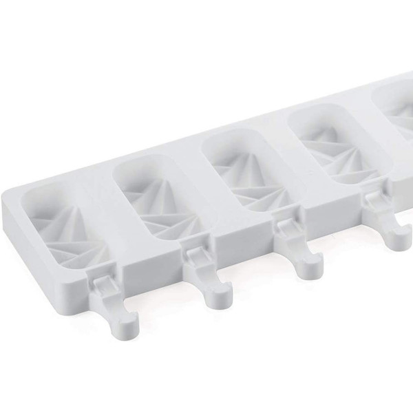 Stampi gelati Cristalli Geometrici o Shock alti 9 cm Silikomart: 2 stampi in silicone Top White + 1 vassoio in ABS da 30 x 40 cm (colore bianco) + 50 bastoncini in legno di faggio, da Silikomart.