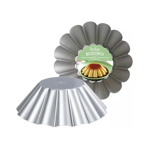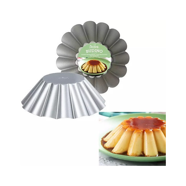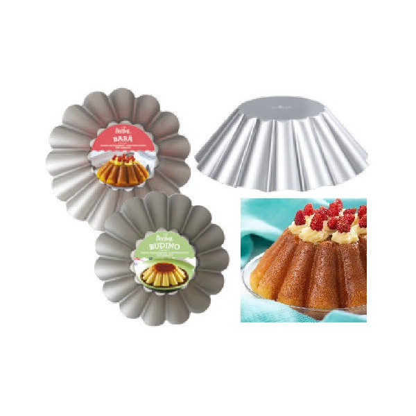 Sampo babà o budino a margherita senza tubo in acciaio antiaderente Decora: stampo budino medio ø11 / ø20xh7 cm o stampo babà grande ø12,5 / ø24xh8 cm