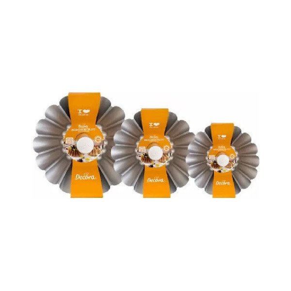 Stampo da forno con tubo per torta budino a margherita o per torta babà, da Decora, di dimensioni: diametro 20 cm oppure ø24 cm oppure ø28 cm ed altezza 8,5 cm in metallo antiaderente.