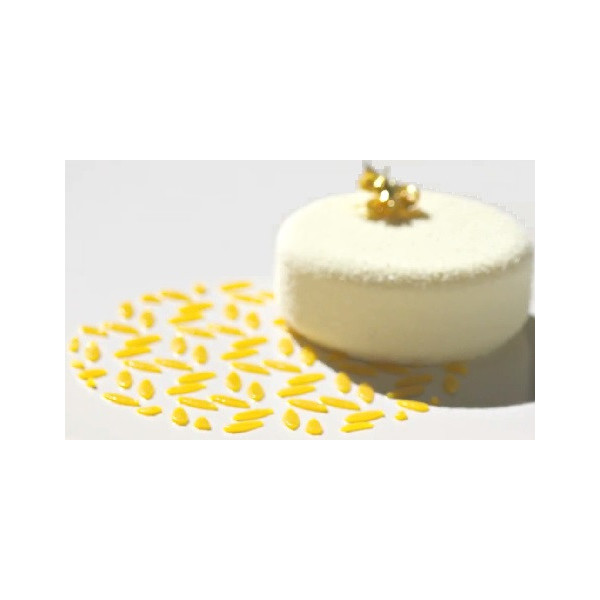 Utilizzo: decorazioni del piatto di portata di preparazioni salate o di dessert, semifreddi, dolci, torte, gelati. da spalmare con un gel o un cremoso.