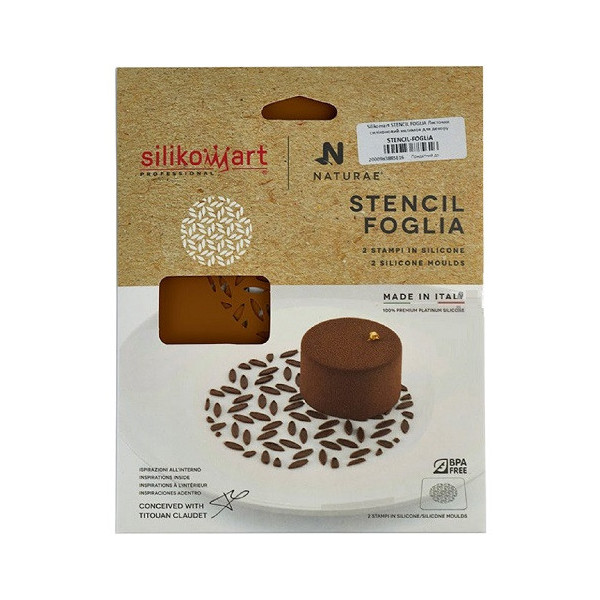 Con gli stencil foglia Silikomart crei decori foglie ⌀100 h 1 mm, ideale per decorazioni veloci e perfette per dessert al piatto o creazioni salate con estrema facilità.