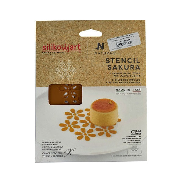 Stencil sakura Silikomart set 2 stampi silicone giallo, ultrasottile della linea Naturae di Silikomart, per decorazioni dei piatti di portata, di dessert e salati, a prova di servizio.