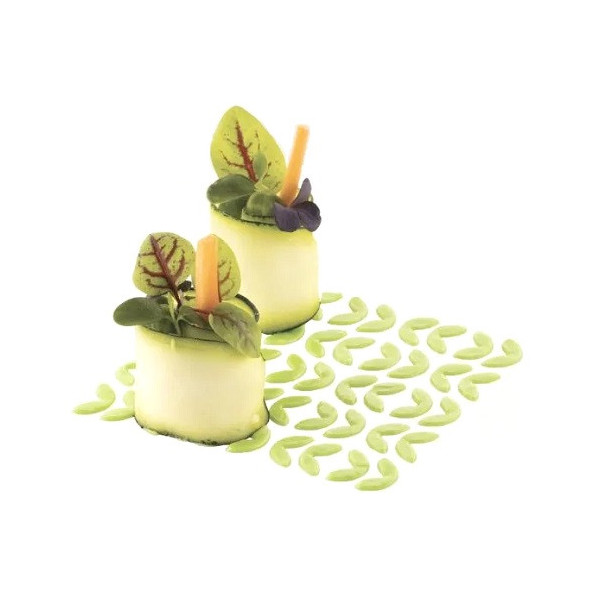 Stencil foliage Silikomart set 2 stampi silicone giallo, ultrasottile della linea Naturae di Silikomart, per decorazioni dei piatti di portata, di dessert e salati, a prova di servizio.