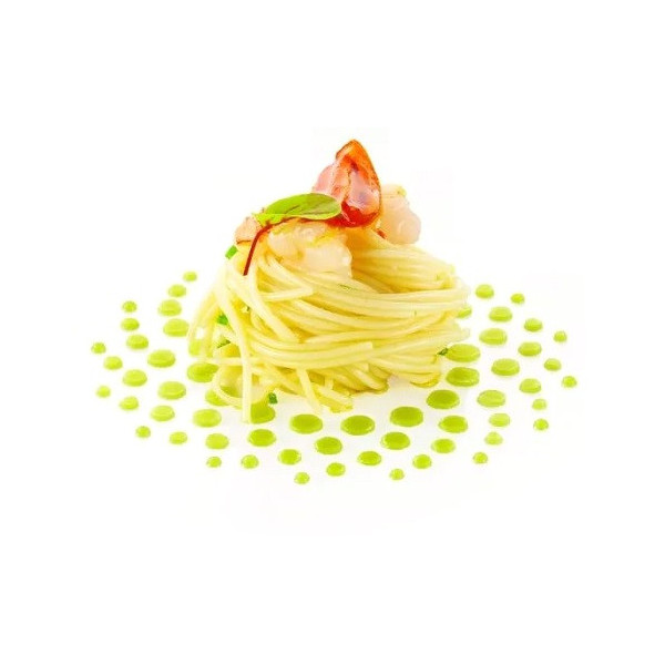 Utilizzo: decorazioni del piatto di portata di preparazioni salate o di dessert, semifreddi, dolci, torte, gelati. da spalmare con un gel o un cremoso.