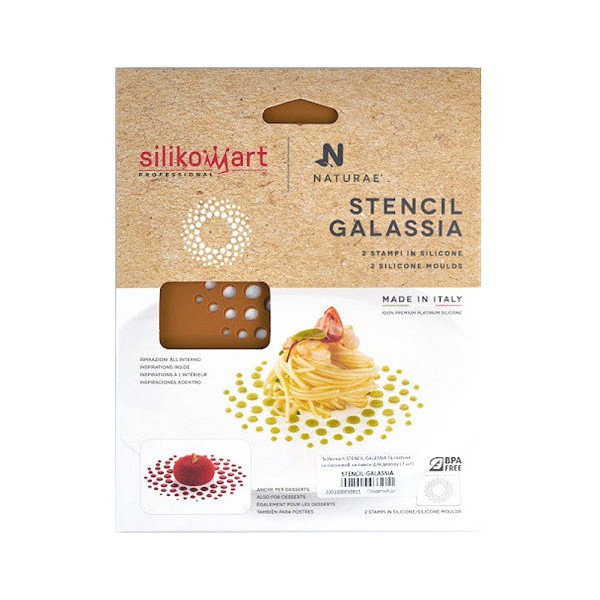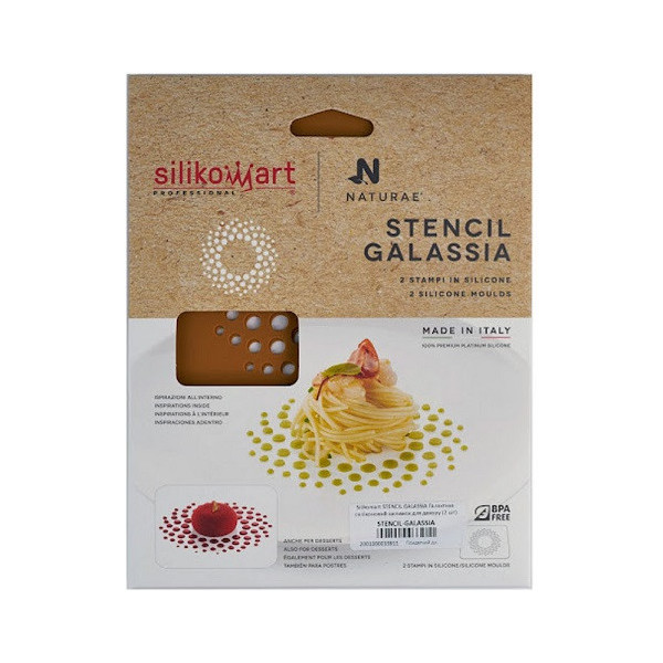 Stencil galassia Silikomart set 2 stampi silicone giallo, ultrasottile della linea Naturae di Silikomart, per decorazioni dei piatti di portata, di dessert e salati, a prova di servizio.