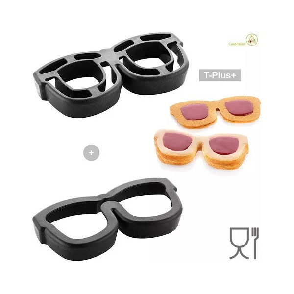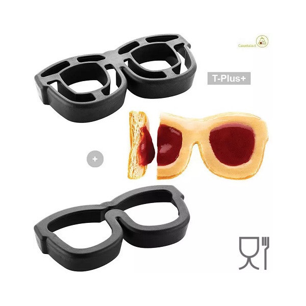 Lunettes set 2 stampi per tagliare e cuocere direttamente in forno nello stampo, a forma di Occhiali 3 D, da 17,8 cm x 8,4 cm, alto 2,5 cm, in materiale T-Plus+ colore nero da Silikomart