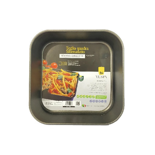 Teglia quadrata sforna tutto Vespa: teglia da forno in alluminio antiaderente o teflonato per uso universale a forma quadrata alta e di lato: da 30 cm a 40 cm, da Vespa, ideale per dolci e rustici.
