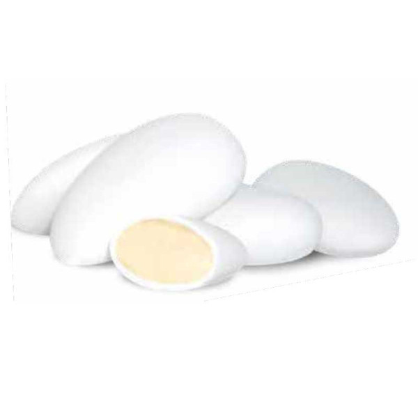 Busta Confetti Maxtris Crystal Almond Incartati Bianco 1 kg: mandorla Spagnola pelata ricoperta da un sottile strato di zucchero.