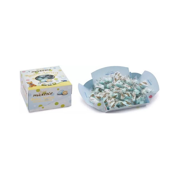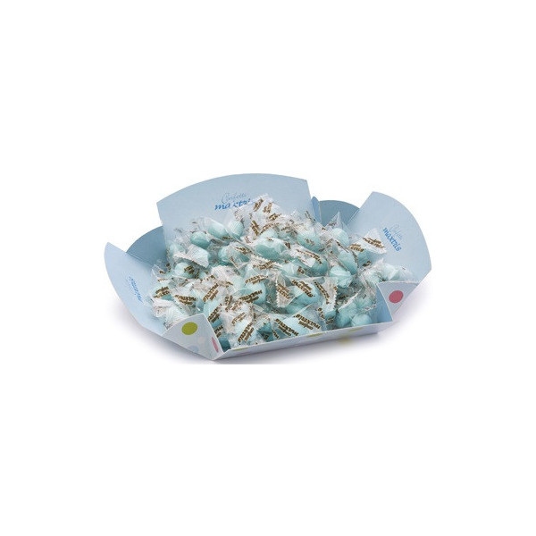 Vassoio Dolce Arrivo Celeste confetti celesti Maxtris incartati 500 g, ideali per celebrare l'arrivo del tuo bimbo.