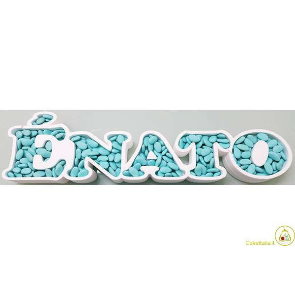 Addobba la tavola della confettate o il Candy Bar della festa per la Nascita del tuo bimbo con il Vassoio in Polistirolo Artistico con scritta È Nato e festeggiare la Nascita del tuo bimbo.