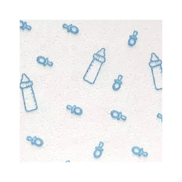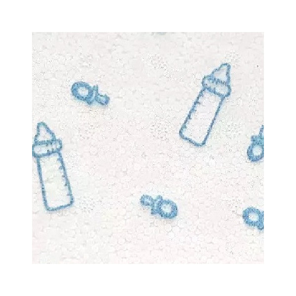 Veli in organza celeste ad effetto floccato con rilievo morbido, vellutato ed elegante a forma di biberon, in confezione da 50 veli, ideali come portaconfetti