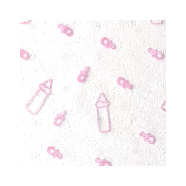 Veli in organza rosa ad effetto floccato con rilievo morbido, vellutato ed elegante a forma di biberon, in confezione da 50 veli, ideali come portaconfetti